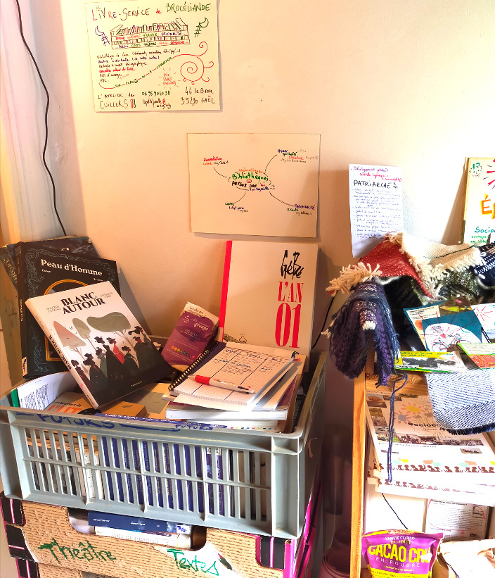 Par ailleurs, nous occupent l’émergence d’un (énième) lieu collectif à Muel, un peu de bénévolat pour le caravrac, à la maison d’Ernestine ou vers l’école démocratique de Muel, et bien sûr tous les ouvrages nécessaires du quotidien, de la famille au jardin, de l’introspection à la domesticité.